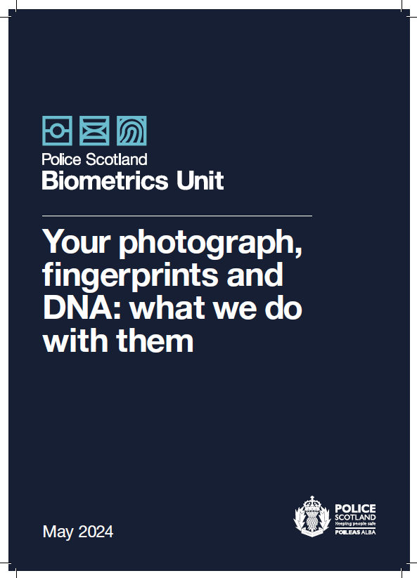 New Police Scotland Biometrics Information Leaflet From Monday 10 June 2024, and in response to recommendations made in 2023, Police Scotland began distributing an information leaflet to all persons in police custody who have biometric data taken because of arrest.... -